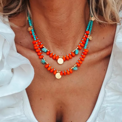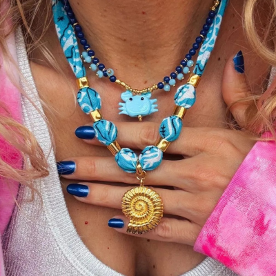An ins handicraft blogger recommends a blue necklaces with handcrafted beaded collarbone chains